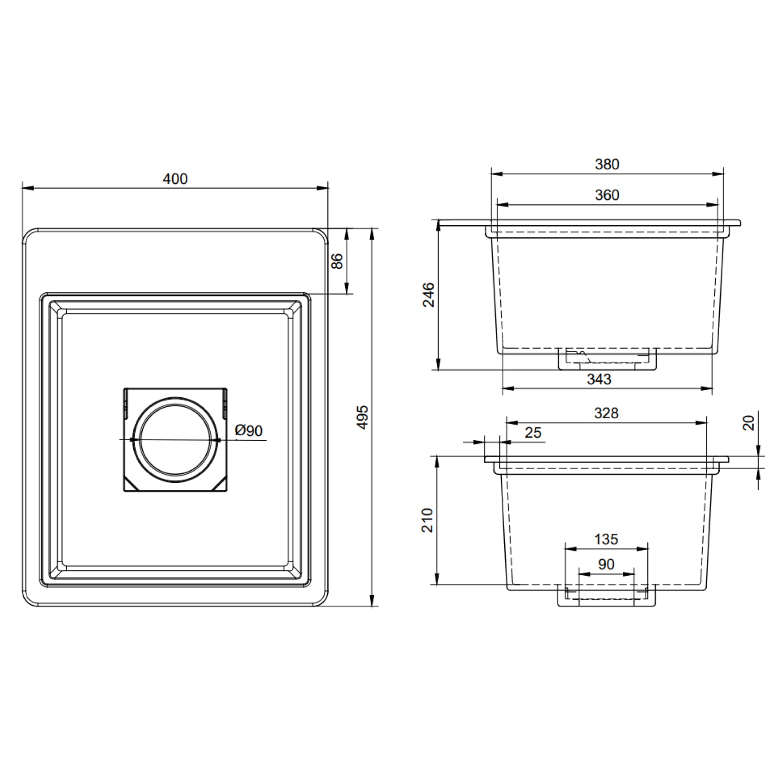 ✅ Dimenzije sudopera: 400 x 495 mm