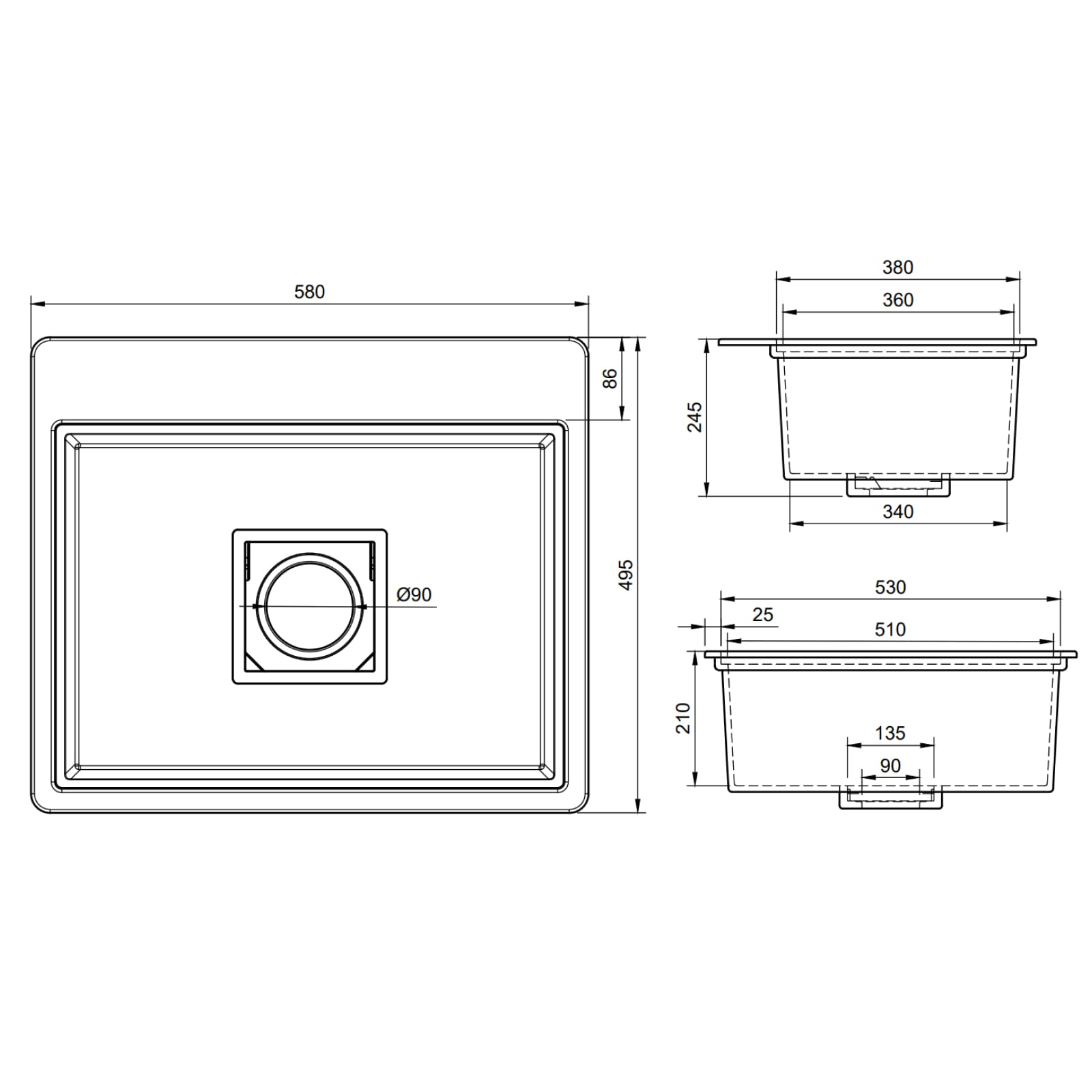 ✅ Dimenzije sudopera: 580 x 495 mm